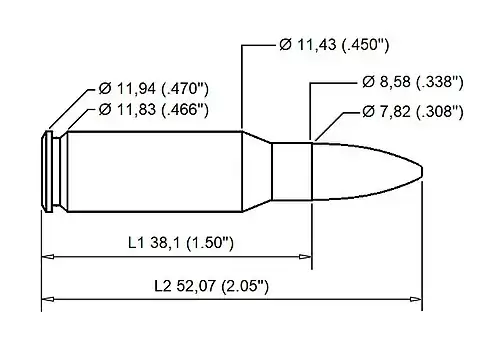 | Diâmetro do Projétil | ,308 in (7,82 mm) | |
