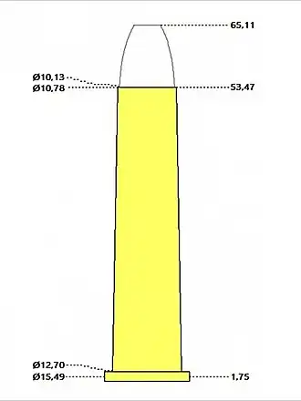 - ↑ a b Barnes, Frank C. (2012). Cartridges of the World (em inglês) 13.ª ed. [S.l.]: Gun Digest Books. p. 139. 568 páginas. ISBN 978-1-4402-3059-2. Consultado em 3 de janeiro de 2021