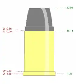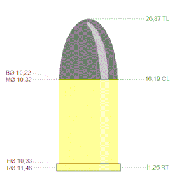 | Diâmetro do Projétil | ,402 in (10,2 mm) | |