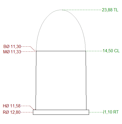| Diâmetro do Projétil | ,445 in (11,3 mm) | |