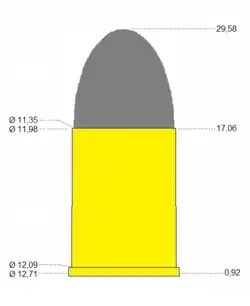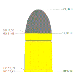 | Diâmetro do Projétil | ,455 in (11,6 mm) | |