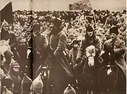 ![]() A cavalaria durante Guerra Civil Russa, ao centro, da direita para esquerda, Vorochilov, Ordjonikidze e Budionny | |