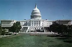 - ↑ Quando o Congresso começou, o Senado era dividido entre 50 senadores democratas e 50 republicano. O voto de desempate era do vice-presidente, que até 20 de janeiro era controlado pelos democrata, o Senado elegeu Robert Byrd que ocupou o cargo até 20 de janeiro e Strom Thurmond sucedeu Byrd. O controle republicano mudou novamente em 6 de junho de 2001, quando Jim Jeffords deixou o Partido Republicano e Byrd foi novamente eleito como presidente pro tempore