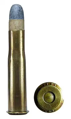 O cartucho original de 1874 disparava uma bala de chumbo comprimido, de 25,0 g (386 gr), 27 mm (1,06 pol) de comprimento, envolta por um "sabot" de papel, impulsionada por 5,2 g (81 gr) de pólvora negra de granulação "1F", gerando uma velocidade de saída de 450 m/s (1.500 pés/s), a velocidade caia para 430 m/s (1.400 pés/s) a 25 m (82 pés).[3]