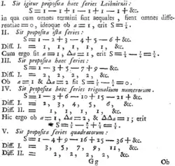 …já não fica nenhuma dúvida que a soma da série 1 − 2 + 3 − 4 + 5 - 6 etc. é 1/4; dado que origina-se na expansão da fórmula ¹⁄(1+1)², cujo valor é incontestavelmente 1/4. O conceito torna-se mais claro ao considerar-se a série geral 1 − 2x + 3x² − 4x3 + 5x4 − 6x5 + etc. que obtém-se ao expandir a expressão ¹⁄(1+x)², que é igual à série que atribui-se x 1.