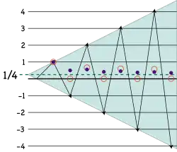 A soma de Borel de 1 − 2 + 3 − 4 + … portanto, é[11]