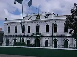 O Brasão de Armas do Brasil ornamentando e compondo a arquitetura da frontaria do palacete