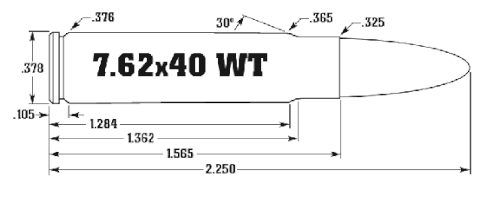 O 7,62×40mm WT (Wilson Tactical)[1] é um cartucho do tipo "wildcat" baseado no calibre 7,62×40 mm, onde o ombro do WT foi movido ,003 polegadas (0,0762 milímetros) para frente e a boca tornada ,001 polegadas (0,0254 milímetros) maior para admitir tolerâncias de produção em massa enquanto permanecia dentro da tolerância do ferramental de matriz de recarga original do 7,62×40 mm.[2] O estojo do calibre "pai", o 5,56×45mm NATO, foi cortada para 1,560 polegadas (39,6 milímetros) e redimensionada com uma matriz de dimensionamento de 7,62×40 mm.[3] O comprimento total do estojo após o encurtamento e redimensionamento é de 1,565 polegadas (39,8 milímetros). O cartucho foi projetado para usar balas de ,308 polegadas (7,82 milímetros) de diâmetro em pesos entre 110 grãos (7,13 gramas) e 150 grãos (9,72 gramas), com uma taxa de torção padrão de 1:12".[2] A Wilson Combat afirma que balas mais pesadas podem ser usadas em canos com uma taxa de torção de 1:8 para cargas subsônicas.[4]