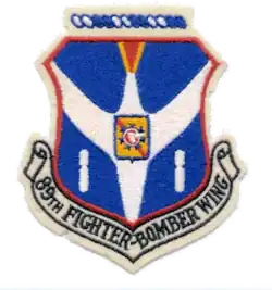 | Distintivo (patch) com o emblema da 89ª Ala de Caça-Bombardeiro (aprovado em 12 de março de 1953)[4] | ![]() |
