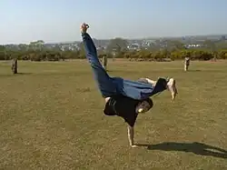 ![]() O chute em cartwheel (aú batido) na capoeira | |