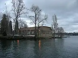 ![]() Vista da ASUW Shell House em primeiro plano. Ao fundo, o Husky Stadium