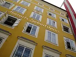 - ↑ O nome de batismo completo das crianças era Maria Anna Walburgia Ignatia e Joannes Chrysostomus Wolfgangus Theophilus. Maria Anna sempre foi conhecida pelo diminutivo "Nannerl", enquanto que o garoto começou a ser chamado Wolfgang Amadé (ou Amadè). A forma "Wolfgang Amadeus", ocasionalmente utilizada no seu tempo, popularizou-se desde então. Interessantemente, "Theophilus" e "Amadeus" são respectivamente as formas em grego e latim para "adorado de deus".[7]
