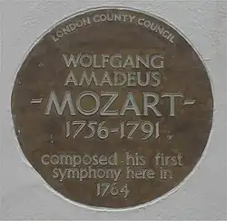 Leopold, recuperado em finais de Setembro, mudou-se com a família para o centro londrino, num alojamento em Thrift Street (mais tarde, Frith Street), mais especificamente em Soho. Para a sorte dos Mozarts, esses alojamentos não só estavam localizados perto de várias salas de concerto, como também muito próximos às residências de Carl Friedrich Abel e Johann Christian Bach. Bach, um dos filhos de Johann Sebastian Bach, rapidamente tornou-se companheiro da família: Nannerl, mais tarde, recordaria uma cena em que Bach e o seu irmãozinho de oito anos tocavam uma sonata juntos, revezando em concertos solo, e disse: "ninguém imaginaria que isso tivesse sido tocado por uma pessoa sozinha".[54] Não se sabe se os Mozarts chegaram a se encontrar com Abel, mas Wolfgang conhecia sua sinfonias — provavelmente através de uma série de encontros anuais das obras de Bach-Abel — e foi muito influenciado por ele.[55] Em 25 de Outubro, a convite do Rei Jorge, as crianças foram tocar nas comemorações que marcavam o aniversário de adesão do Rei.[56] A próxima aparição pública foi em um concerto em 21 de Fevereiro de 1765, perante uma audiência moderada (a data coincidiu com um concerto de Bach-Abel).[56] Um último concerto formal realizou-se em Londres, em 13 de Maio, mas, entre Abril e Junho, algumas pessoas iam até a residência dos Mozarts, onde pagavam cerca de 5 xelins para apreciarem Wolfgang tocando suas próprias peças musicais.[57] Durante todo o mês de Junho, ambos os "jovens prodígios" (assim eram chamados) tocavam diariamente no Swan e no Harp Tavern em Cornhill, onde eram pagos com dois xelins e moedas de menor valor.[57] De acordo com Sadie,[58] esses foram os últimos esforços desesperados de Leopold em conseguir, com as apresentações, guinéus do público inglês. Hildesheimer[18] compara essa fase da turnê como uma viagem de circo, em que os Mozarts seriam uma família de acrobatas, fazendo de tudo para conseguir recompensas.