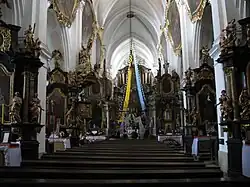 O altar principal, obra de Georg Schroetter, foi construído nos anos de 1681 a 1684. É decorada com duas pinturas de Michael Willmann, o grande Natal na visão de São. Bernard e O maior Salvador do mundo. À esquerda, a grande pintura é cercada por esculturas de São. Benedict, St. João Batista e São Pedro, e à direita St. Bernard, St. João Evangelista e São Paul. No altar lateral encontra-se a figura da Mãe de Deus com o Menino, conhecida como Mãe da Língua Polaca. Em 1952 foi coroado com coroas episcopais.