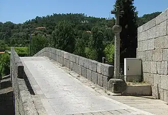 Enquadra-se num meio rural, isolado, num vale rodeado por uma zona montanhosa da serra do Marão. Do lado esquerdo da margem a ponte é antecipada por um cruzeiro do século XVII e o acesso é feito por uma rua onde existe um conjunto de casas na sua maioria edificadas no século XVIII e XIX. Na outra margem o acesso está circundado de quintas e terrenos agrícolas, que se alarga junto à ponte, criando um espaço para estacionamento, com uma fonte e algumas árvores, aqui também se localiza uma praia com areal e onde funciona ocasionalmente um bar. A jusante da ponte existem várias plataformas com pequeno tanque e canais de condução de água, em cantaria. Próximo, na margem direita, ergue-se um velho moinho.