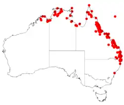 - ↑ Jimbo, T.; Eddowes, P. (2022). «Acacia aulacocarpa». Lista Vermelha de Espécies Ameaçadas. 2022. doi:10.2305/IUCN.UK.2022-1.RLTS.T38360A198308262.en