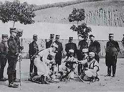 Oficiais da Missão Militar Francesa adestrando membros da Força Pública de São Paulo, 1906.
