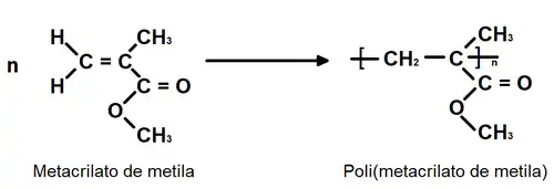 O PMMA pode ser obtido a partir do seu monômero, metil metacrilato ou metacrilato de metila [4]. O monômero sofre polimerização usando os métodos comuns de radicais livres e iniciações aniônicas por técnicas de volume, solução, suspensão ou emulsão [4].