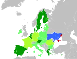 De acordo com uma pesquisa realizada pelo Ifop encomendada pela Yalta European Strategy e pela Fondation Jean-Jaurès de 3 a 7 de março de 2022, 92% dos apoiadores da adesão da Ucrânia à UE na Polônia, 71% na Itália, 68% na Alemanha, e 62% na França.[56]