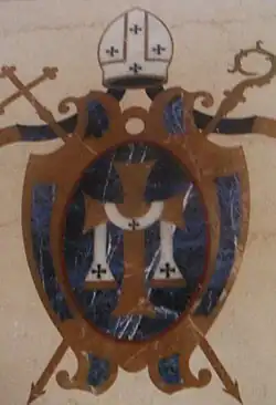 - Descrição: O campo do escudo eclesiástico é azul, com uma cruz em jalde, portando uma estola clássica branca com três cruzes em jalde. Os elementos externos do brasão são a mitra com as ínfulas, o báculo, e a cruz processional.