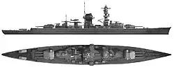 | Armamento | 6 canhões de 283 mm 8 canhões de 149 mm 3 canhões de 88 mm 8 tubos de torpedo de 533 mm |
