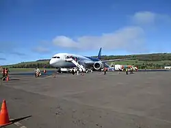 O aeroporto é servido apenas pelo operador aéreo LATAM e utilizado como rota de trânsito para os passageiros que seguem de ou para Papeete, rota operada pela LATAM.[5]