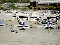 O aeroporto possui dois terminais: o Terminal A, inaugurado em 1990,[132] e o Terminal B, inaugurado em 2010.[133] Os terminais estão conectados pelo lado ar.[134] Em 2009, os portões do aeroporto foram renumerados em preparação para a adição do Terminal B. O Portão A16B, na extremidade norte, tornou-se o Portão 1 e o Portão A1A, na extremidade sul, tornou-se o Portão 16.[135] O primeiro terminal moderno do aeroporto, o Terminal C, foi inaugurado em 1965 e fechado e demolido em 2010.[136] Atualmente, o local é utilizado como estacionamento de curta duração, mas será usado na segunda fase do Terminal B, quando esta for construída.[137]