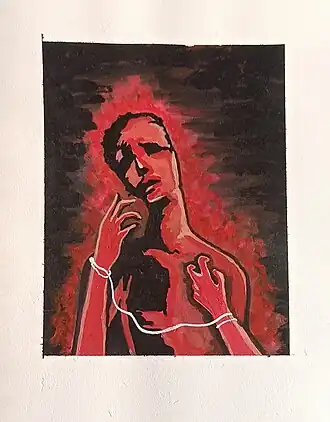 | Representação de uma confusão mental profunda que leva a agitação psicomotora. | |