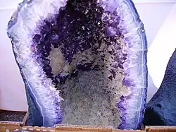 | Secreções | Quando cavidades no material geológico são preenchidas com substâncias coloidais ou substâncias minerais formadoras de cristais, são frequentemente formados agregados concêntricos semelhantes a cascas ou conchas. Os melhores exemplos são as ágatas-amigdalinas formadas a partir de ácido silícico, mas também as rodocrosites e a Schalenblende (uma mistura de esfalerite, wurtzite e outros minerais em agregados com uma forma concoidal típica). | ![]() |