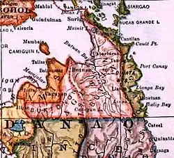 Um de distritos militares era o Distrito 3.º de Surigao, que incluía entre seu território à província de Caraga, com capital no povo de Surigao e a capitânia de Butuán.[2]