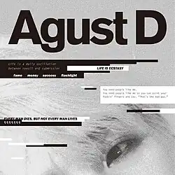 - ↑ a b c d e Herman, Tamar (16 de agosto de 2016). «BTS' Suga Addresses Depression & Cost of Fame on 'Agust D' Mixtape». Billboard (em inglês). Consultado em 23 de abril de 2023