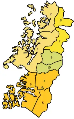 Para fins de administração local, as províncias estão divididas em 10 comunas.[5]