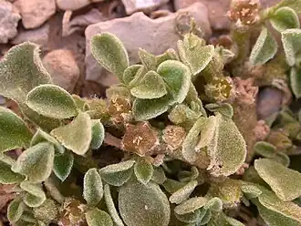 A planta pode crescer até 25 centímetros de altura. Os seus ramos espalham-se pelo solo, as suas folhas são pecioladas, um tanto carnudas e peludas. Possui flores pequenas com sépalas longas de 1 a 3 mm, amareladas por dentro, e sem pétalas.[2]