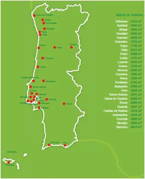 | Locais | 32 Lojas em Portugal |