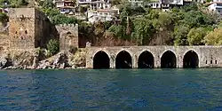 - ↑ a b Hakları, Telif (2002). «Historical Places». www.alanya.bel.tr (em inglês). Alanya Belediyesi (Prefeitura de Alanya). Consultado em 20 de junho de 2010. Cópia arquivada em 20 de junho de 2010