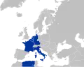 | CEE-6 (1957-1972) | Em 1957, os seis estados fundadores da Comunidade Europeia do Carvão e do Aço (Bélgica, Alemanha Ocidental, França, Itália, Luxemburgo e Países Baixos), constituíram a Comunidade Económica Europeia e a Comunidade Europeia da Energia Atómica. Em 1962, a Argélia se retira no qual até à data fazia parte do Império colonial francês. |