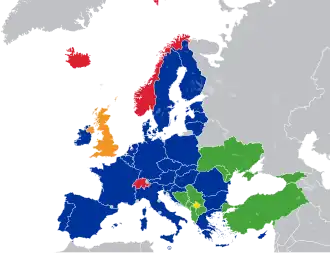 Os três principais países da Europa Ocidental que não são membros da União Europeia, Islândia, Noruega e Suíça, já apresentaram pedidos de adesão no passado, mas depois os congelaram. No entanto, juntamente com o Listenstaine, participam no Mercado comum da União Europeia, bem como no espaço Schengen, o que os torna estreitamente alinhados com a União Europeia. De acordo com uma estratégia da Associação Oriental, é improvável que a União Europeia convide mais alguns de seus vizinhos pós-soviéticos a se unir ao bloco antes de 2020.[9] No entanto, em 2014, a União Europeia assinou acordos de associação com a Geórgia, a Moldávia e a Ucrânia[10] e o Parlamento Europeu aprovou uma resolução reconhecendo a "perspectiva europeia" deste três países.[11]