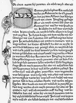 - Ehebuchlein, "Opúsculo sobre o Matrimônio", (1472), onde discute se um sábio deve ou não se prender a uma mulher