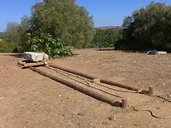 Reconstrução dos métodos utilizados para a deslocação dos blocos de pedra, no Centro de Interpretação de Alcalar.