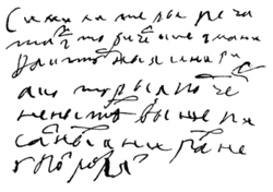 A maior parte dos manuscritos no idioma russo, em especial, hoje em dia, cartas pessoais e trabalhos escolares, utilizam o alfabeto cursivo, pelo fato de sua grafia ser mais rápida que o alfabeto "impresso", se aprendido corretamente. Nas escolas russas, a maior parte das crianças são ensinadas, desde as primeiras séries, a escrever utilizando-se deste método.