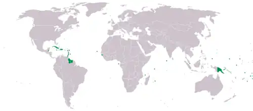 Samoa Oriental, Guam, Antilhas Neerlandesas e Ilhas Virgens Estadunidenses são os observadores.