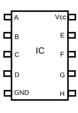 Quase todos os circuitos integrados (CI's, ou IC's em nomenclatura Inglesa) tem pelo menos dois pinos que se conectam à alimentação do circuito em que estão instalados. Estes são conhecidos como pinos de alimentação do CI. No entanto, a rotulagem dos pinos varia de acordo com a família CI e fabricante.