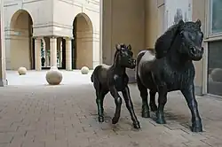 - Ridhästar (1997), brons, Barkabyskolans gård, Järfälla