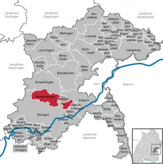 | Localização de Allmendingen no distrito de Alpes-Danúbio | |