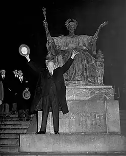 On the steps in front of Low Library is Daniel Chester French's sculpture Alma Mater.