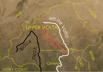 O nome Alto Volta indicava que o país contém a parte superior do rio Volta. As cores da bandeira nacional correspondiam aos nomes de seus três principais afluentes - o Volta Negro, o Volta Branco e o Volta Vermelho.