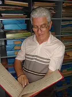 O musicólogo Aluízio José Viegas no arquivo da Orquestra Lira Sanjoanense em 2008 | |