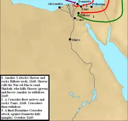 A tomada de Ascalão por Balduíno III em 1153 era uma primeira etapa vital para esta conquista. A partir daí, os cavaleiros da Ordem do Hospital começaram a preparar mapas de possíveis rotas de invasão. Amalrico liderou a sua primeira expedição ao Egito em 1163, reclamando que o fatímidas não tinham pago o tributo anual instituído durante o reinado do seu irmão.