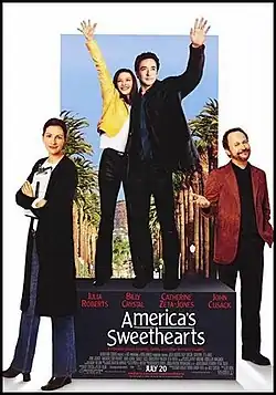 America's Sweethearts estreou em 20 de julho de 2001 e faturou US$30,181,877 no primeiro final de semana, ficando em segundo lugar atrás de Jurassic Park III (US$50,771,645).[7] No final de sua exibição, o filme arrecadou US$93,607,673 nas bilheterias domésticas e US$44,583,755 no exterior, totalizando US$138,191,428. Com base em um orçamento de US$46 milhões, o filme foi um sucesso de bilheteria.[6] As filmagens ocorreram no Lake Las Vegas.