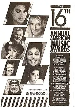 - ↑ a b «16th American Music Awards». Rock On The Net (em inglês). Consultado em 15 de setembro de 2024